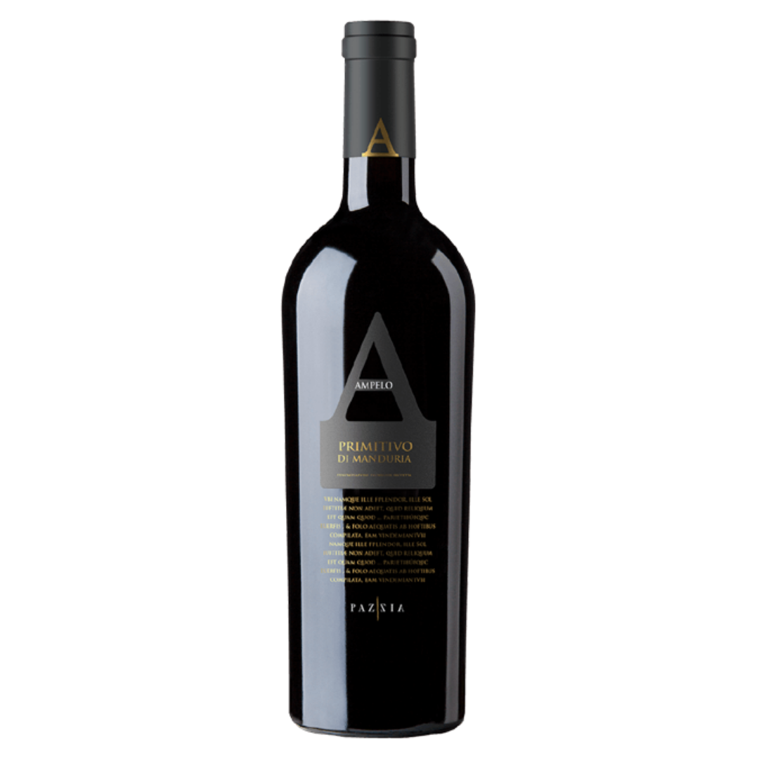 Cor vermelho rubi, com reflexos violeta, perfume opulento de cerejas maduras e ameixas com notas de cacau e baunilha. Um vinho com uma estrutura notável, suavizado pelo calor persistente da uva Primitivo, com persistência boa e agradável